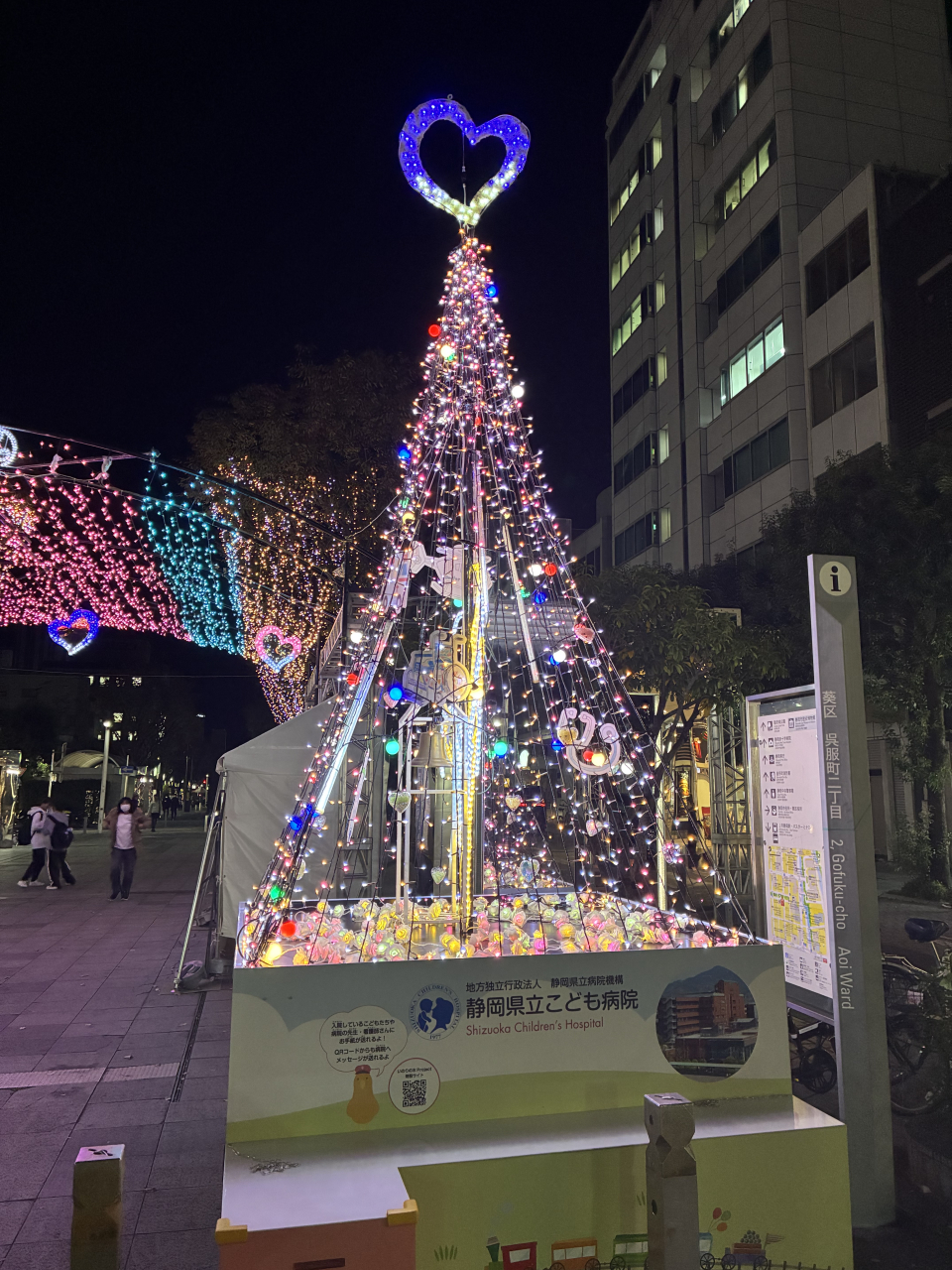 冬の風物詩である「青葉シンボルロードイルミネーション」(静岡市共催)では、ハートをテーマとした約7mの「ハートフレーム」等、ピンク・イエロー・ブルーに彩られた 可愛い「ハートイルミネーション」を実施し、約500mの並木道を約174,000個の電球で煌びやかに彩ります。