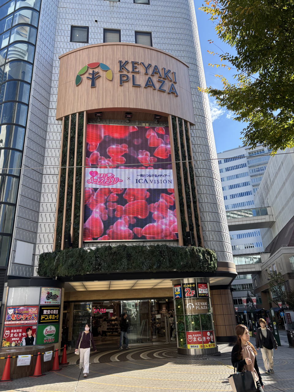 同時にけやきプラザのICAビジョンのデジタルサイネージにも投影!