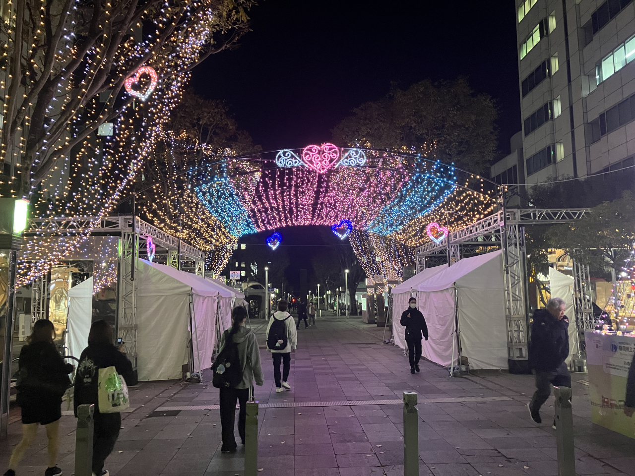 今年はハートをモチーフとした「ハートイルミネーション」を実施し、約500mの並木道を174000個の電球で可愛くきらびやかに彩ります。