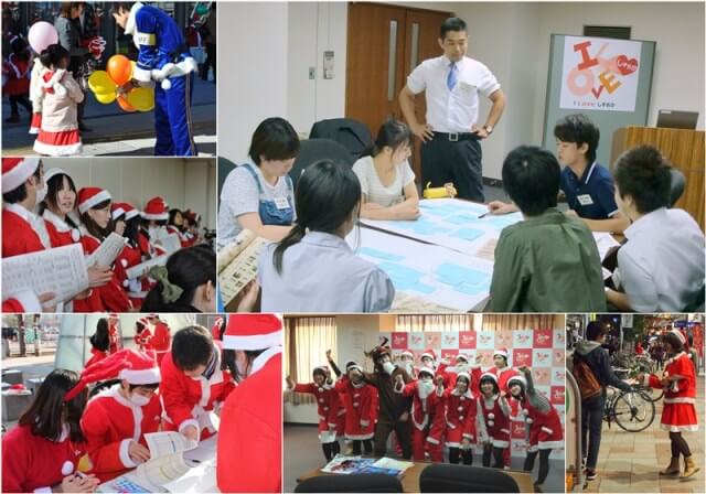 らぶしずインターンでは、9月以降の毎週水曜日を中心に、社会人やインターン経験者の指導のもと、グループに分かれ、「サンタフェスティバル」の企画・広報・運営に携わります。