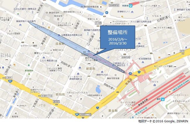 呉服町通り、青葉通り、けやき通り、両替町、JR静岡駅周辺などの静岡市中心市街地や、