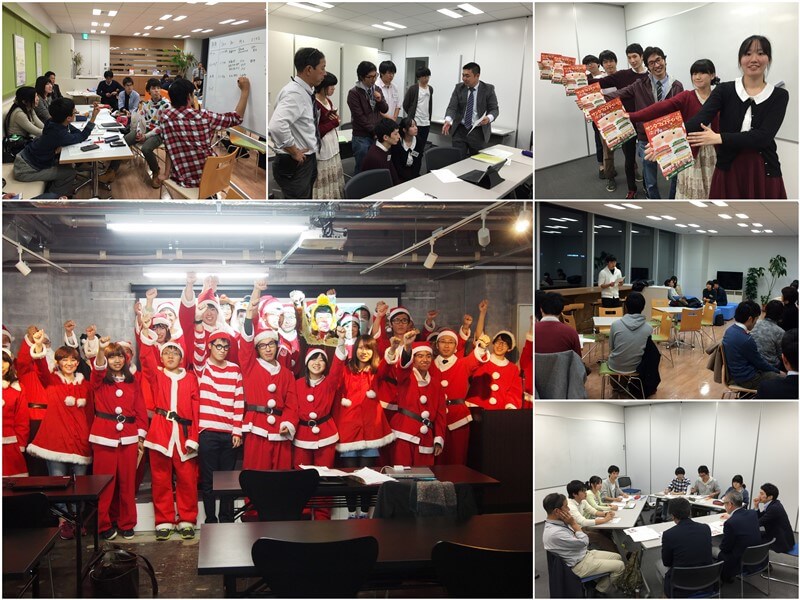 A1:遅刻・早退・欠席については、事務局まで事前にご連絡いただければ問題ありません。各グループの進捗状況は、サイボウズやFacebook、Line等で共有しますので、そちらをご確認ください。 |