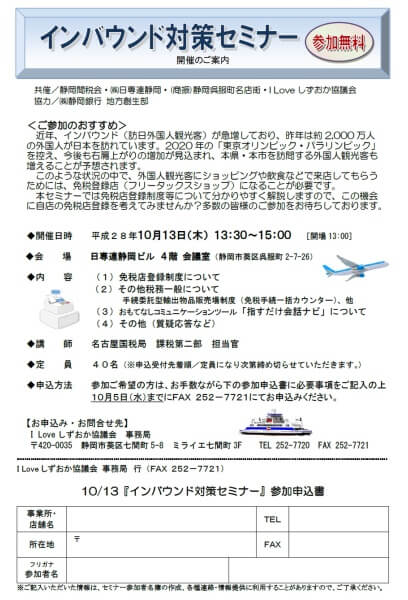 免税対応に興味をお持ちの店舗様対象のインバウンドセミナーを開催!