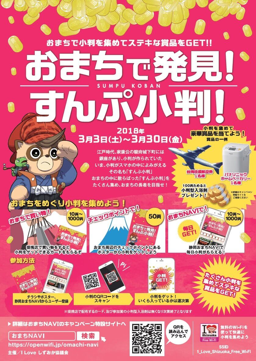 「おまちで発見!すんぷ小判!」は、「I Loveしずおか Free Wi-Fi」で楽しもう!!