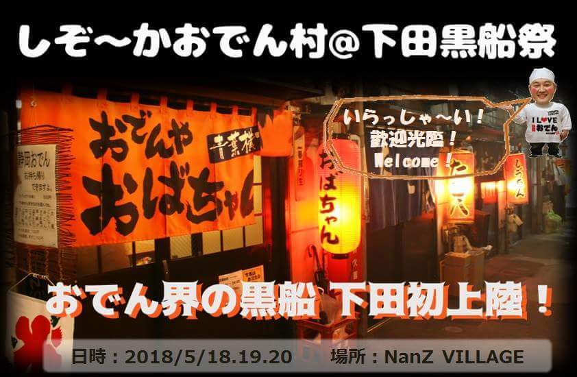 静岡市中心市街地“おまち”を元気にする団体「I Loveしずおか協議会」は、静岡おでんの普及や台湾との交流を目的に、5月18日(金)~20日(日)開催の伊豆下田「黒船祭」期間中、「しぞ~かおでん村」を出張出店します。