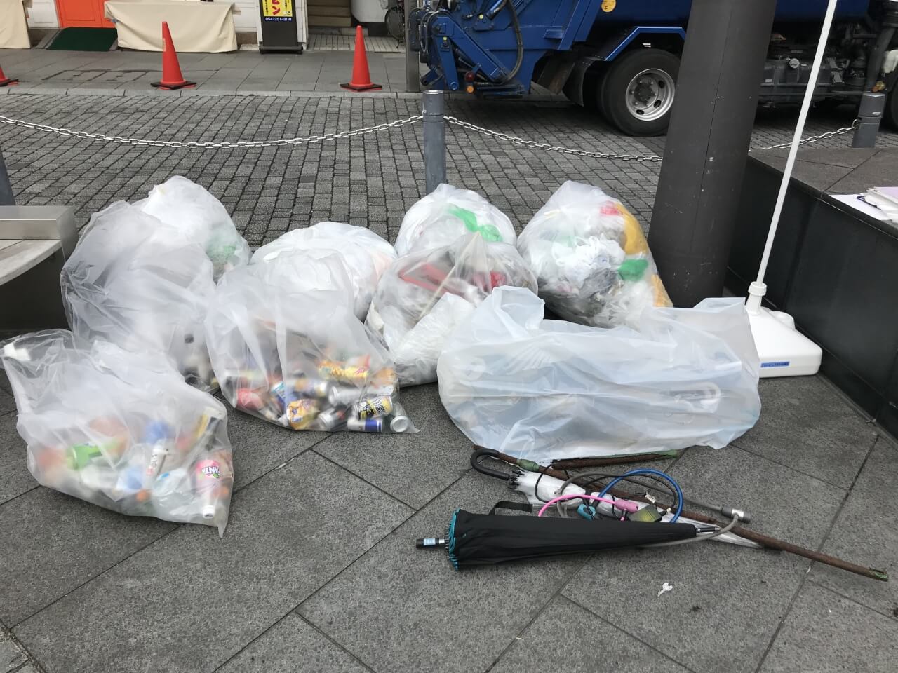 【内訳】 燃えるごみ10袋、ペットボトル0.7袋、カン0.9袋、ビン 0.6袋、不燃物 3袋(傘 本、乾電池、ライター、金属片など)