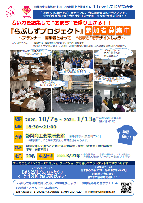 まちづくり団体「I Love しずおか協議会」で、社会人とともに“おまち”の将来を一緒に考える課題解決型プロジェクトに参加しませんか。