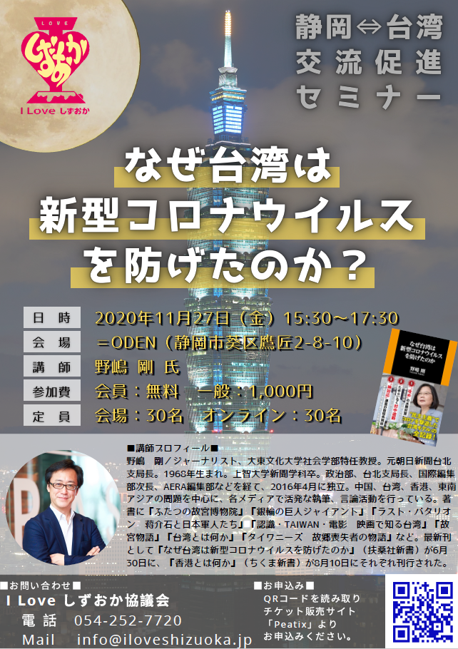 【終了】11/27台湾交流促進セミナー「なぜ台湾は新型コロナウィルスを防げたのか?」参加募集中!