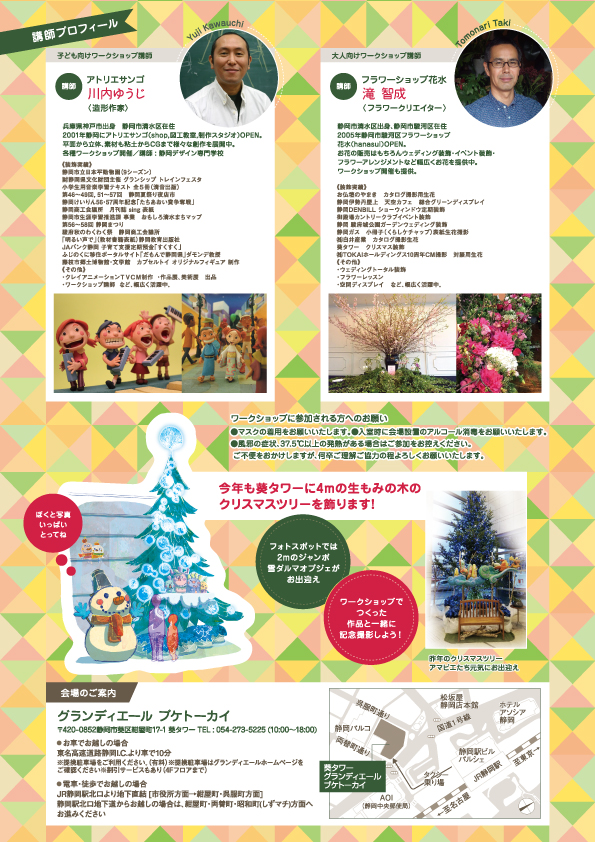 静岡市の中心市街地“おまち”を愛する人々で組織するI Love しずおか協議会が、「青葉シンボルロードイルミネーション」「フラワーベア」「みんなの点灯式」を実施!花でできた可愛いフラワーベアや、リニューアルしたフラワーイルミネーションの写真を撮ろう!冬の“おまち”を素敵なワンダーランドに演出します。チラシはこちら(冬しず2021-2022おまちワンダーランドチラシ)