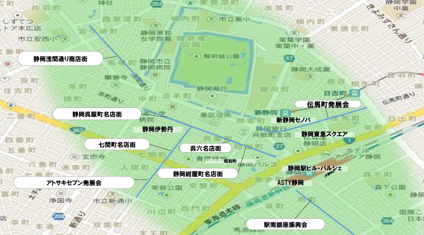 大型店(静岡伊勢丹・新静岡セノバ・静岡駅ビル パルシェ・ASTY静岡・静岡モディ・松坂屋静岡店・静岡パルコ)
