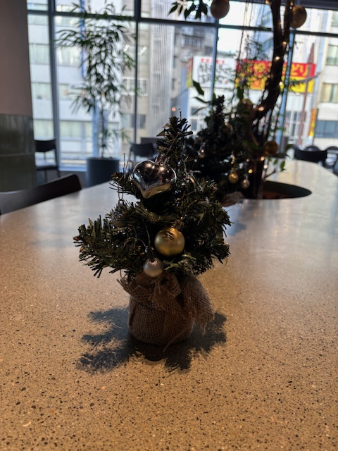 12/25まで ツリーにハート電飾(1階に2つ、地階に1つ) |