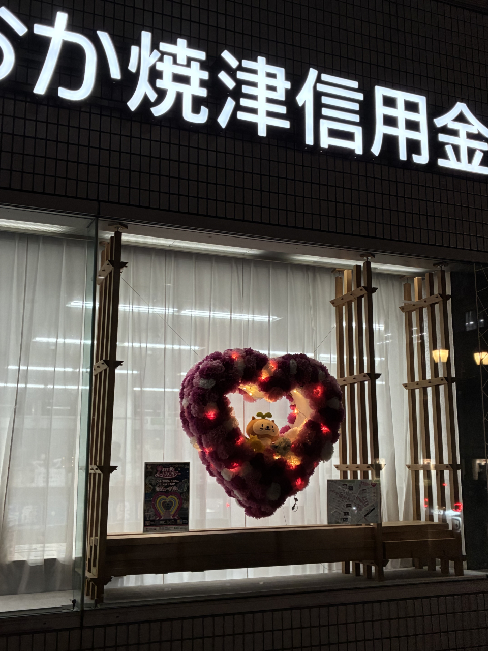 | しずおか焼津信用金庫 追手町支店 | 2/15まで ショーウィンドウがハートデザインに装飾 | ||